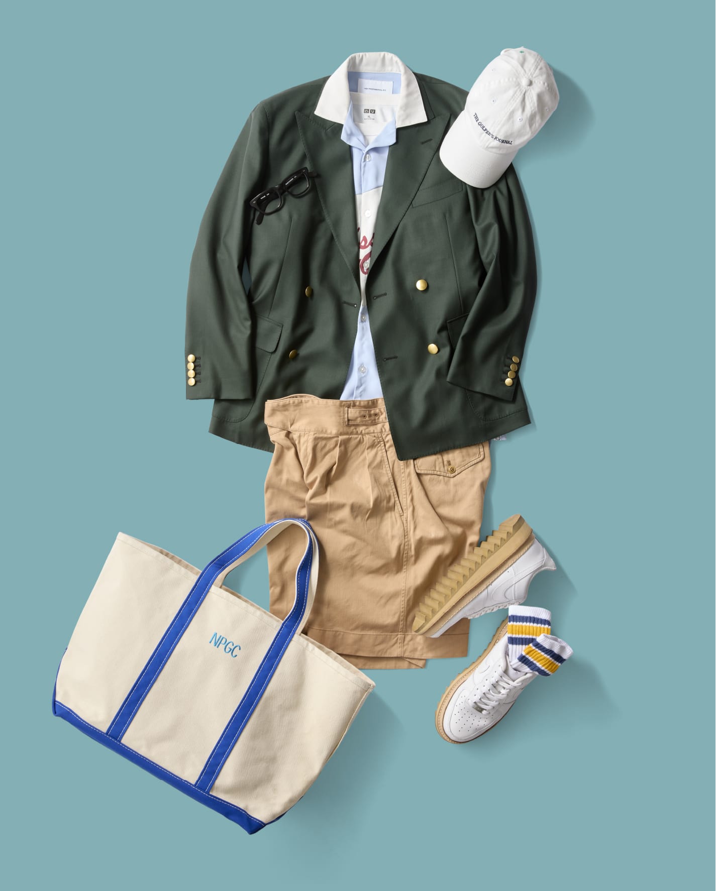 ボーリングシャツにカスタムスニーカーを合わせたスポーツMIXの技ありコーディネート。ドレスジャケットをあえて外しとして取り入れることで、遊び心をくすぐる着こなしが楽しめる。