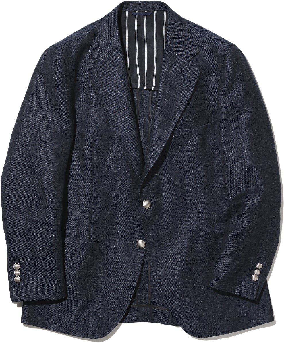 宮崎さんが自分だけの1着に求めたのは、フレンチミリタリー。一見、シンプルなジャケットに見えるが、実は素材にリネンが混紡されたデニムライクな風合いの1着。低く設定されたボタン位置から生み出される寛容さが、全体の風合いにマッチしている。丸みを帯びたシルバーボタンや、裏地に忍ばせたストライプ柄から醸すトラッドな雰囲気は、ブレザーの歴史に敬意を評しつつ、個性を生み出す最適解だ。