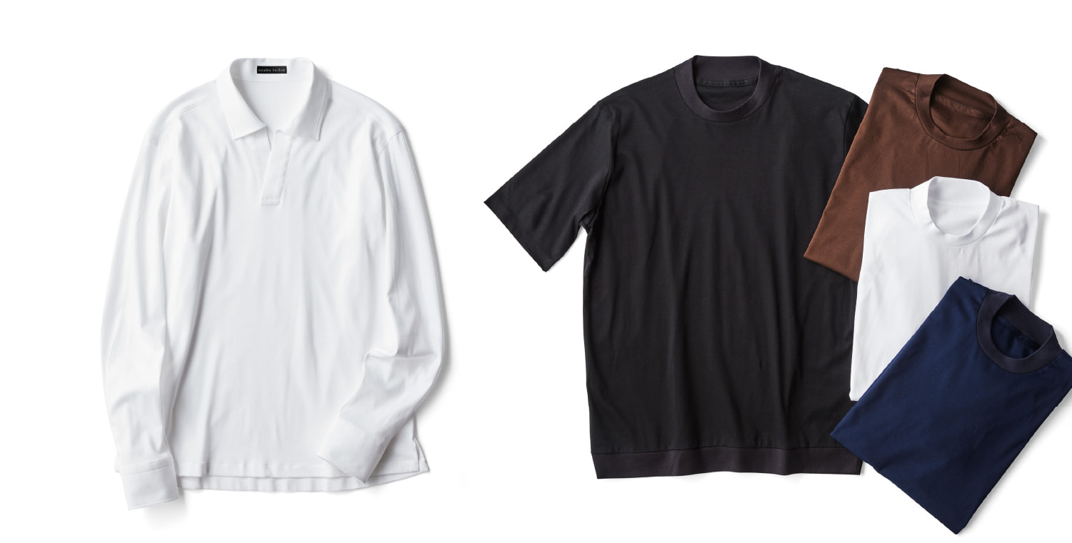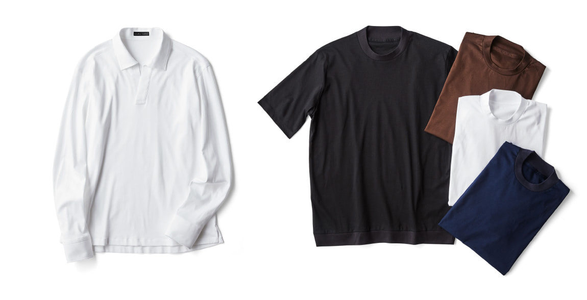 大人のドレススタイルのため開発された、スキッパーシャツとTシャツ。ジャケットのインナーの着こなしをメインに考えた洗練されたサイズ感と上質な素材感が特徴です。スキッパーシャツはもちろん、Tシャツに関しても袖丈と着丈も調整可能なため、ジャケットにスッキリ収まる1枚が実現します。コーディネートアイテムもきっちりと快適さを追及します。