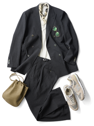 今シーズン、トレンドとして注目されているシアサッカー。清涼感がありながら、リラックス感もあるので、カジュアルにスーツを着こなすのがお薦めです。スラックスは、ホームウォッシュが出来るので、Tシャツに合わせて休日スタイルの着回しもお手の物です。