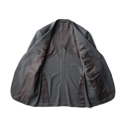 麻布テーラーのジャケットは、構築的なシルエットで、柔らかな着用感が重要であると考えています。そのシルエットと着用感を実現するために、毛芯等は天然繊維メインにこだわっています。現状では、ウォッシャブルに対応しながら、条件に適した副資材に出会えていない為、あえてウォッシャブル対応にはしていません。また、ジャケットの仕立ては選択できるようになっていますが、お薦めは清涼エアライト仕立て(オプション価格¥4,400)です。芯地、パッド、裏地などに軽量かつ高い通気性を実現するものを仕込み、風が突き抜けるような清涼な着心地が味わえます。夏もスーツ着用がマストな人には絶好です。