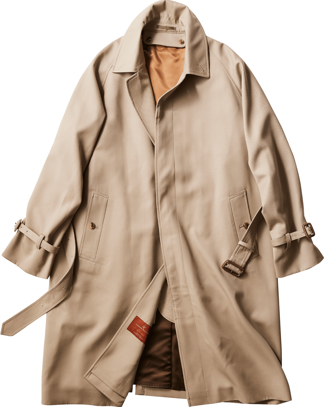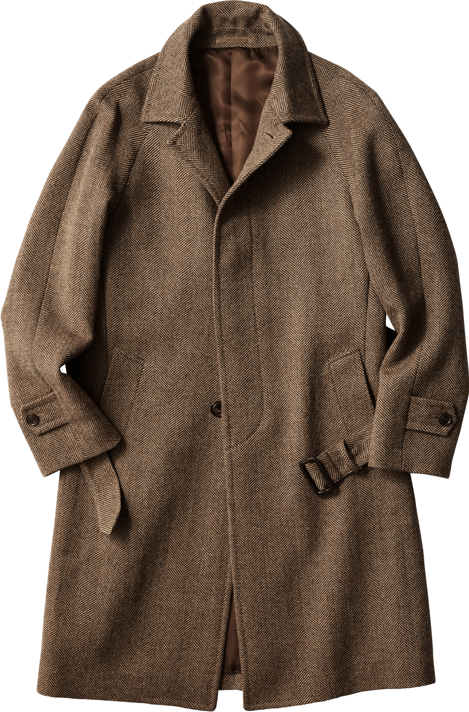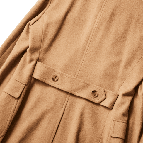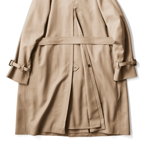 洋服好きには堪らない一枚袖のラグランスリーブに加えて、バックスタイルは深めに入ったインバーテッドプリーツにベルテッド仕様とヴィンテージコートにあるディテールをふんだんに落とし込んだ新モデルです。ロング丈Aラインでゆったりとしたシルエットは、休日スタイルも格上げします。