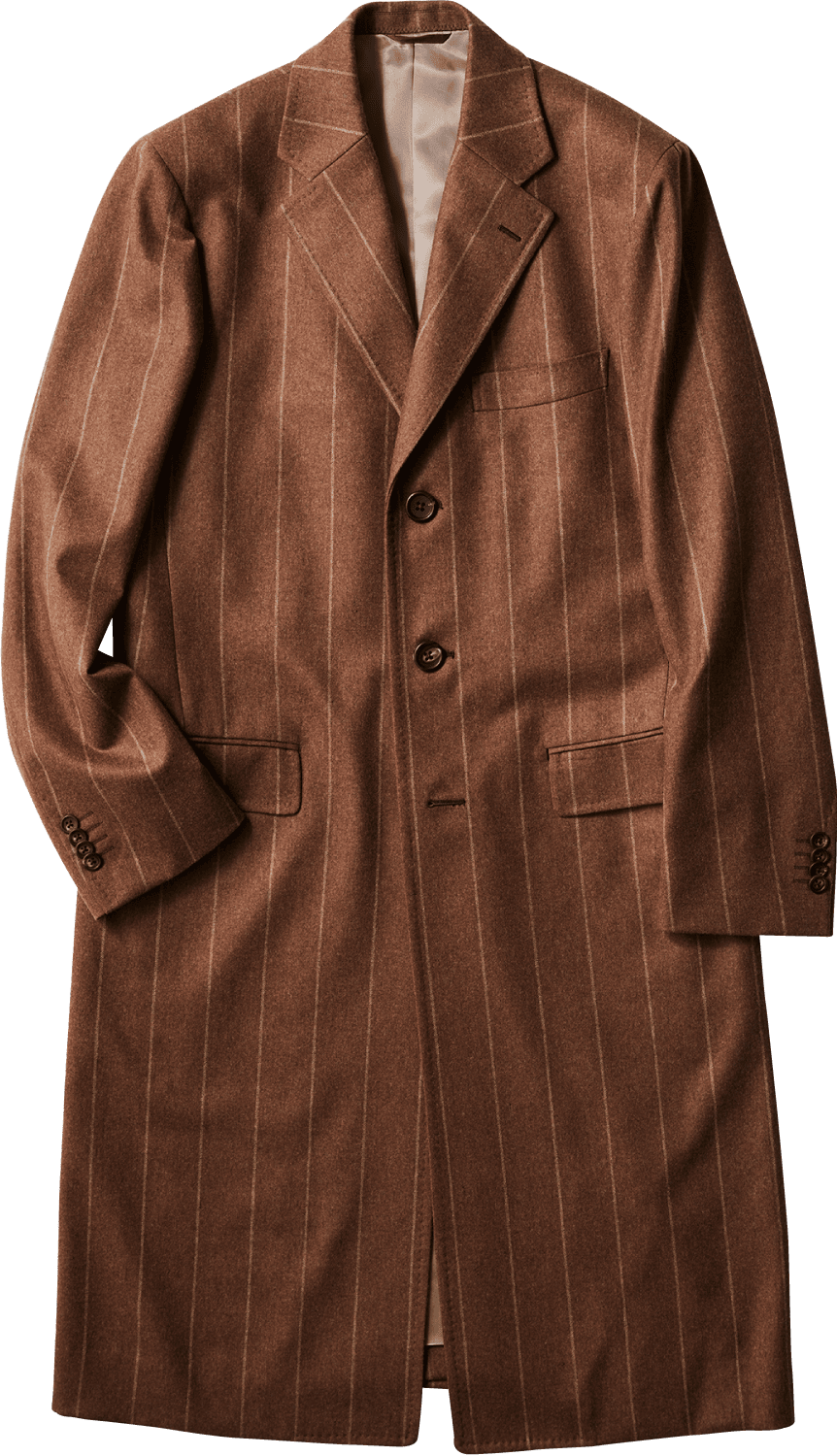 コートの王道は今も昔もウールのチェスターフィールドコート。正装用コートで、最も格調高いコートといわれています。名前の由来は、チェスターフィールド伯爵が好んで着ていたことからこの名がつけられました。今シーズンは、英国的なストライプやヘリンボーンなど、多彩なパターンドコートに注目です。