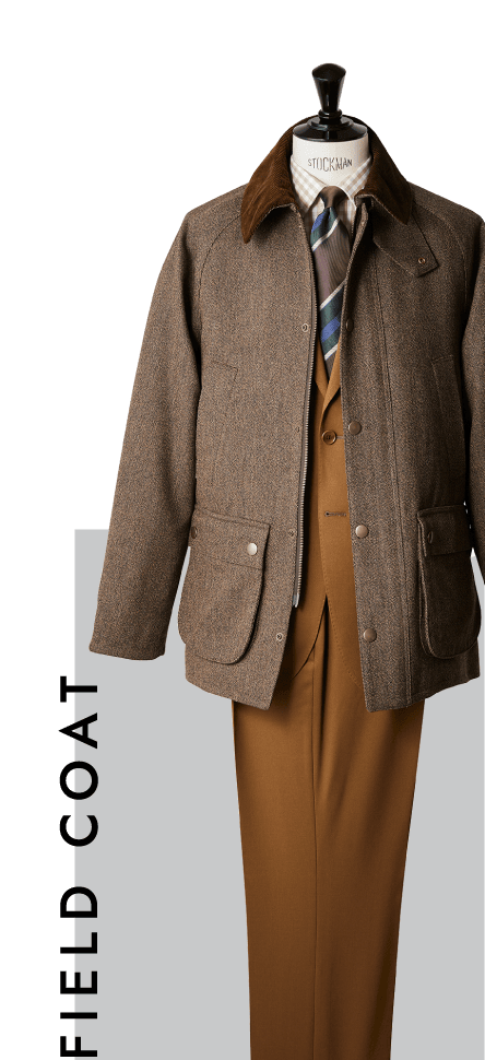 限定で昨年発売し、人気を博しての定番化。ラグランスリーブやサイドベンツ、脇下ベンチレーションやハンドウォーマーなど、乗馬用コートのディテールはそのままに、スマートなシルエットが特徴のドレスフィールドコートです。膝丈のロングコートが支持される一方で、そのカウンターとなるショート丈も注目です。