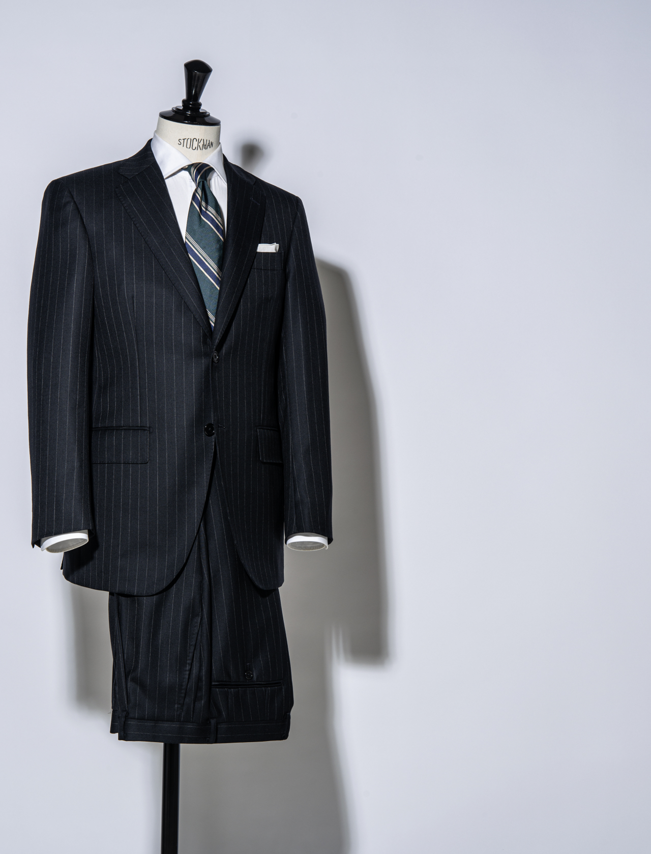 上質な原毛を使用した糸をしっかり打ち込み、仕立て映えと機能性を両立した生地で仕立てたスーツ。ベースは王道のクラシコイタリアモデルで、チョークストライプと相まって堂々たる風格を備えます。この見た目で凄まじく快適なのが、ならではの魅力です。