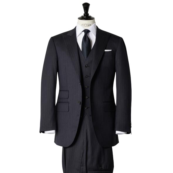 今年のスーツはネイビーズとライプのベステッドスーツを纏っていただいております。